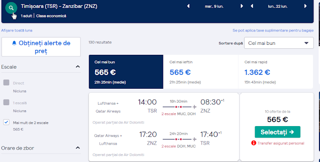 Am gasit preturi rar intalnite la zborurile din Timisoara spre Asia si Oceanul Indian cu Qatar Airways si Lufthansa! De fapt, pentru multe destinatii, sunt cu mult mai bune decat cele din Bucuresti.